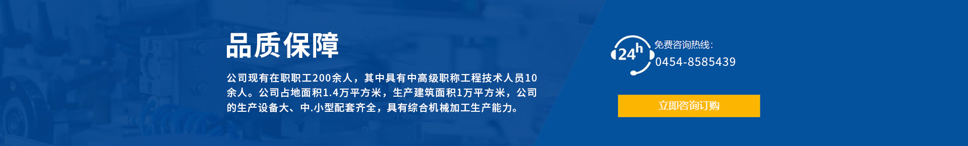 佳木斯市恒興偉業機械制造有限公司,始建于1998年,是具有十 余年生產歷史的中型機械制造企業。公司現有在職職工200余人, 其中具有中高 級職稱工程技術人員10余人。公司占地面積1.4萬 平方米,生產建筑面積1萬平方米,公司的生產設備大、中、小 型配套齊全,具有綜合機械加工生產能力。